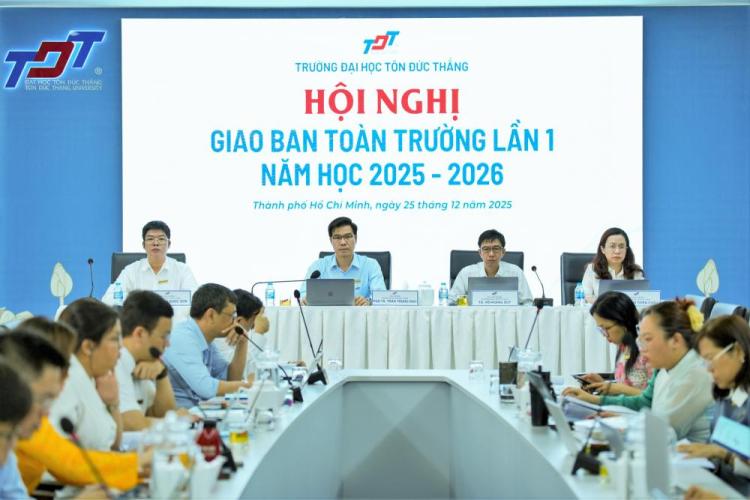 Ngày 25/12/2025, Trường Đại học Tôn Đức Thắng (TDTU) tổ chức Hội nghị giao ban toàn Trường lần 1 - năm học 2025-2026. Hội nghị do PGS.TS. Trần Trọng Đạo – Hiệu trưởng Nhà trường cùng các thành viên Ban Giám hiệu chủ trì, với sự tham dự của các thầy, cô là lãnh đạo các Phòng, Ban, Khoa, Viện, Trung tâm thuộc và trực thuộc Trường.
